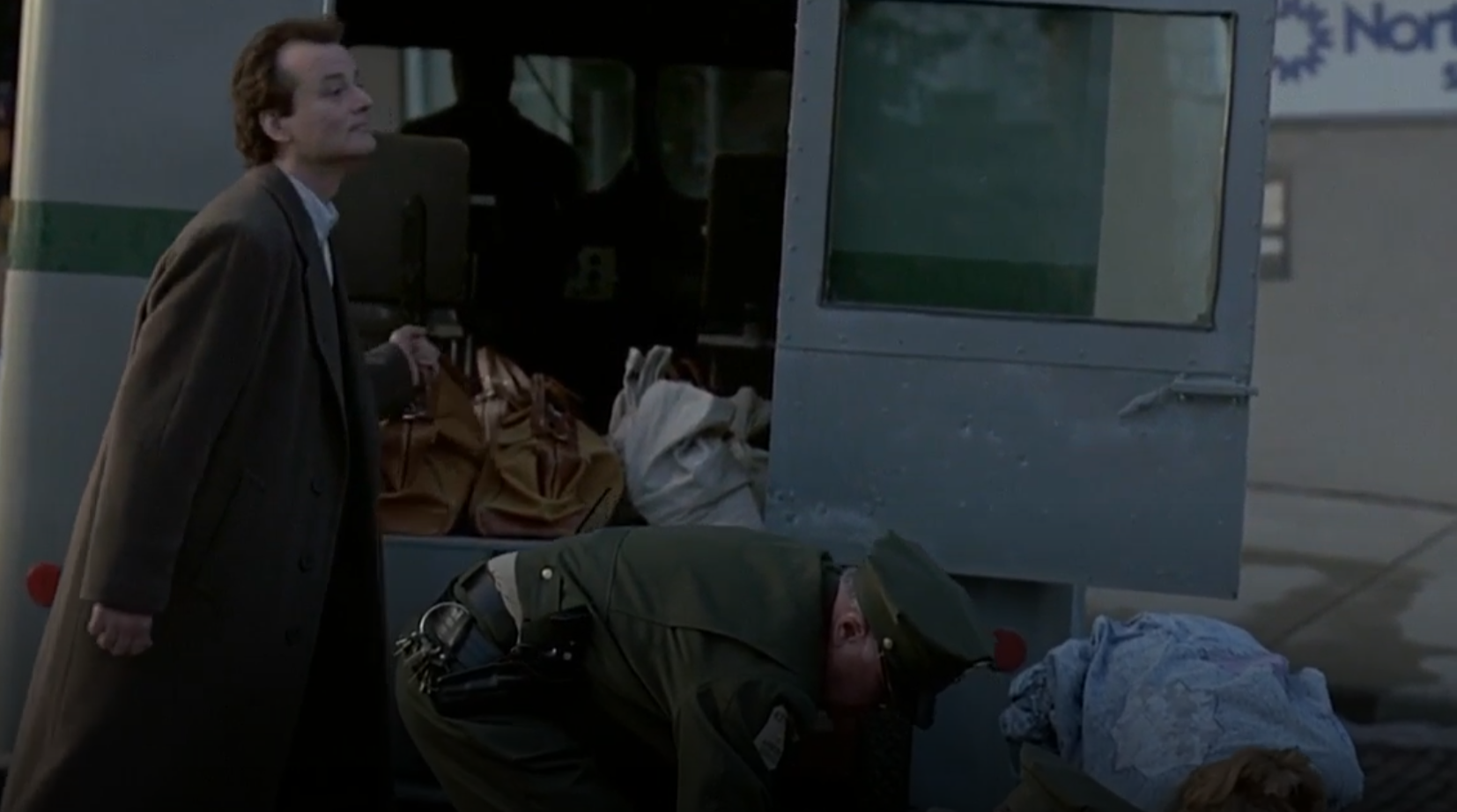 다음날 눈을 뜬 필은 성촉절인 2월 2일 어제가 그대로 반복되고 있음을 깨닫게 됩니다.( 성촉절 안에 마치 무한루프처럼 갇힌 필은 혼란스러워하나, 이내 특유의 못된 심보를 발휘해 현실의 시간에서라면 할 수 없는(해선 안 되는) 장난들을 반복합니다. 예를 들어, 마을 레스토랑에서 만난 여인과의 만남을 반복해 정보를 캐내어 마치 고등학교 동창인 양 속이고 원나잇 스탠드를 한다든가
