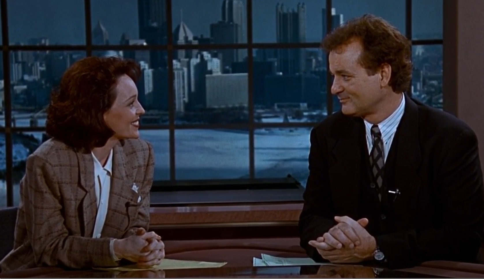 주인공 기상캐스터 필 카너즈 (빌 머레이)는 매사에 불만 가득하고 투덜거리는 남자. 전형적인 싹수없는 쌍남자입니다. 항상 찡그린 얼굴과 표정으로 무신경한 태도로 사람을 대하기 때문에 동료로부터의 평판도 썩 좋지 않습니다.