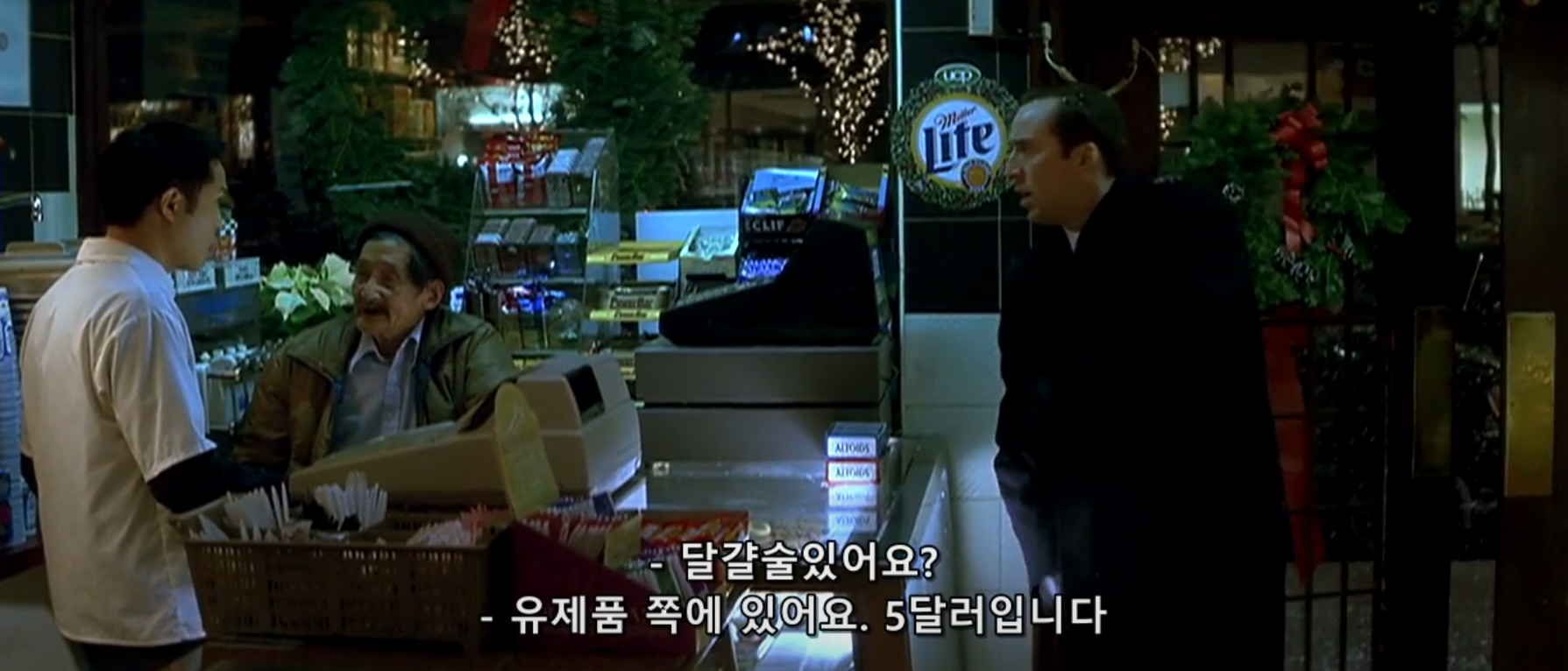 그렇게 일에 미쳐있던 잭도 옛날의 13년 전 여자친구를 기억하며 그리워하는 모습을 가끔씩은 보여주지만, 그래도 지금 이 길을 선택한 것에 후회는 없다는 듯한 말을 하며 '사랑은 사치'라는 표현을 합니다. 그렇게 하루를 마무리하며 마지막으로 회사를 나옵니다. 그리고 눈을 맞으며 텅 빈 도시를 걷다가 우연히 식료품 가게에 들어서게 됩니다.