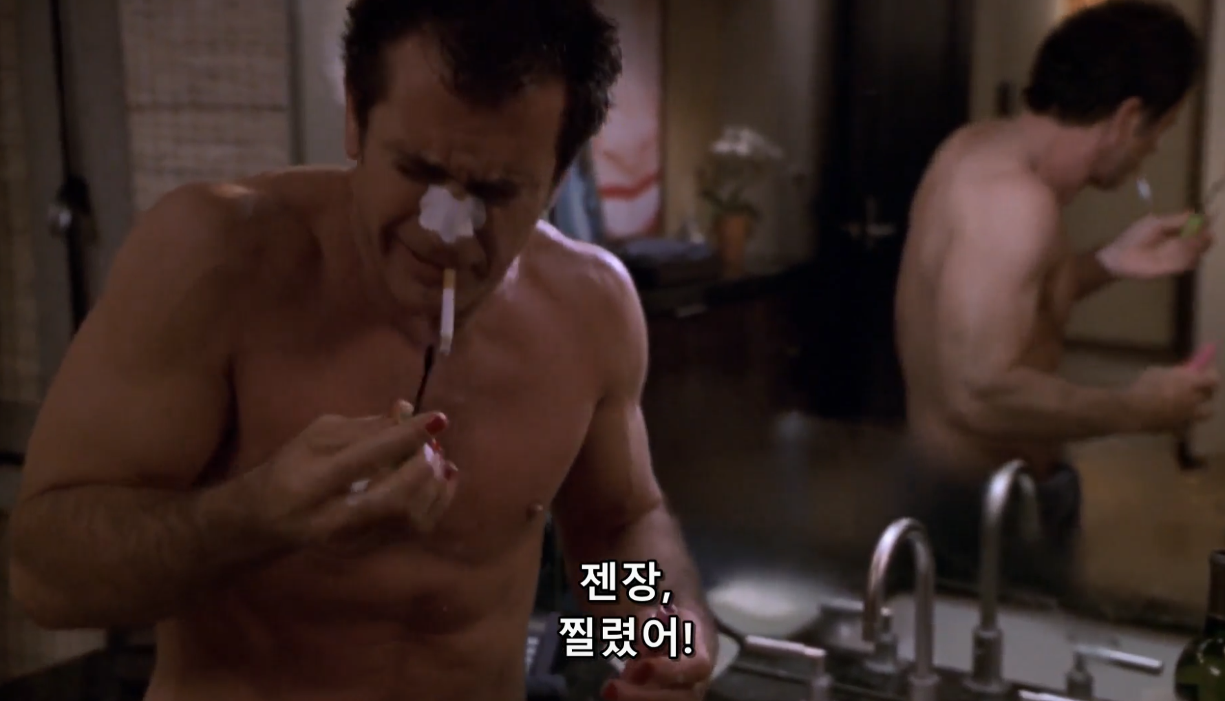 다음 날 아침, 어제의 감전 사고로 욕실에 기절해 있는 닉을 가정부가 발견합니다. 다행히 죽지는 않았습니다.